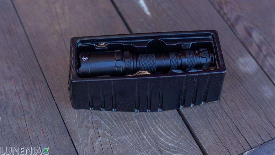 Внутри пластиковая подложка. В комплекте сам фонарик с 21700 5000mah аккумулятором i-серии, чехол, кабель зарядки, уплотнительное кольцо, руководство и гарантийка. Но… что это. Нет клипсы? Руководство и промо-картинки прямо говорят что клипса должна быть. Но я вытянул не тот лотерейный билет, увы. Второй раз за всё время сотрудничества с Nitecore -) Короче, исходите из того, что клипса в комплекте есть.