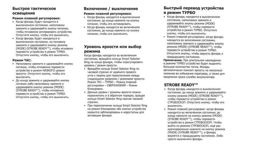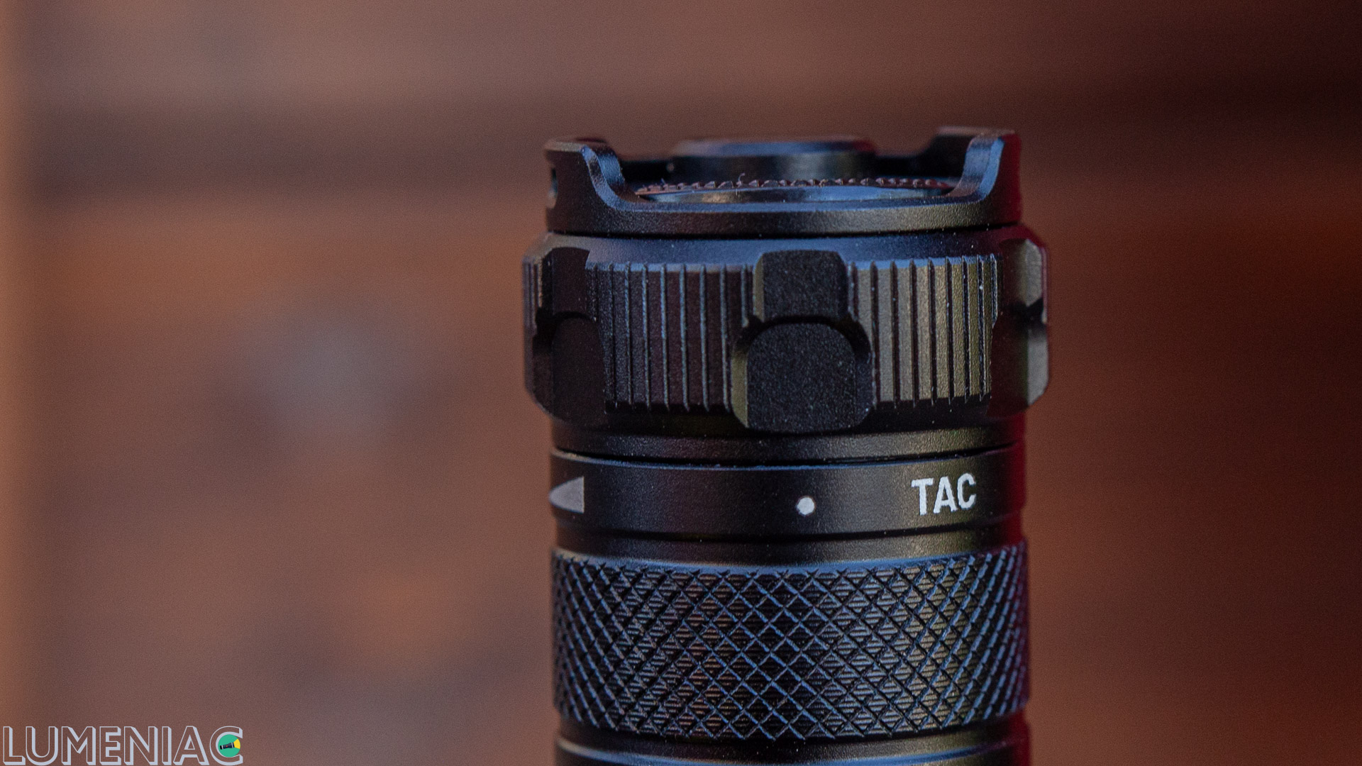 А вот управление мне понравилось. Есть обычный режим с плавной регулировкой яркости, есть тактический с моментальным доступом к турбо и 100люм режиму. Во всех них есть моментальный строб. Есть блокировка и плавная регулировка яркости.