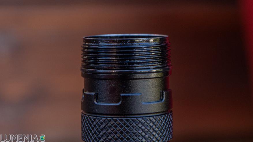 Фонарик тактический, так что безель тут «зубастый», да еще и в каждый зуб встроен шарик стеклобоя
