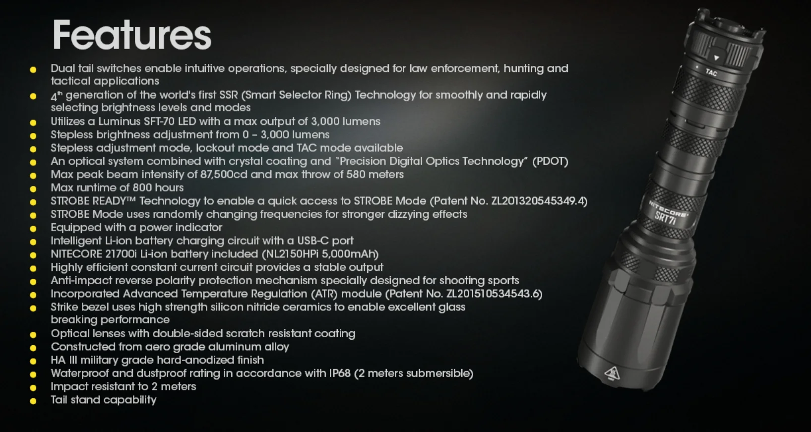 И встроенное кольцо всевластия. Обзор мощного тактического фонаря Nitecore SRT7i