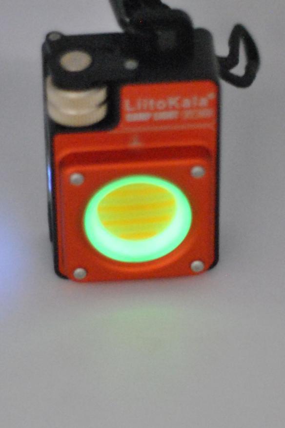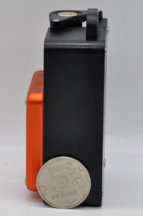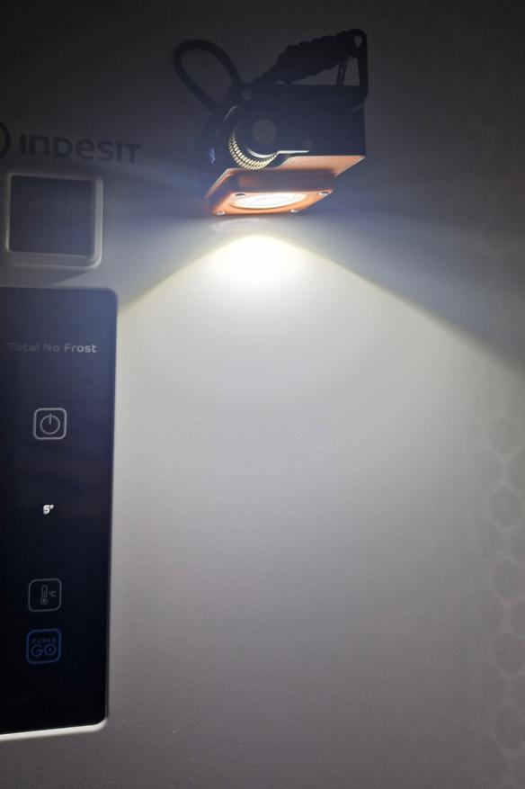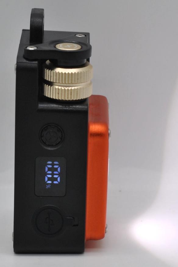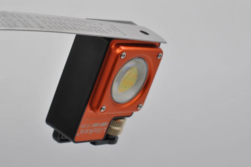Органов управления всего три: кнопка включения сбоку корпуса (на два клика — красное мигание, на удержание строб), сверху кнопка смены режима яркости (на два клика на нее максимум яркости сразу). И самое интересное — энкодер с насечками (металлический), он отвечает только за регулировку световой температуры. Причем он довольно расхлябанный из коробки.