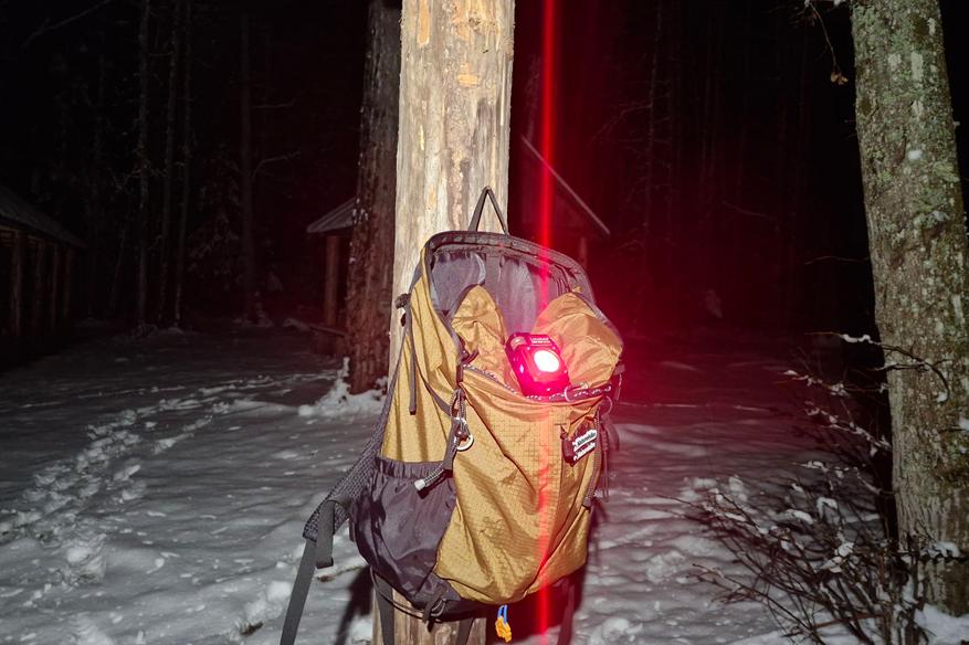 На минимальном режиме яркости вполне хватает осветить стол (особенно если сверху подвесить), а красный маяк заметен метров с 25.