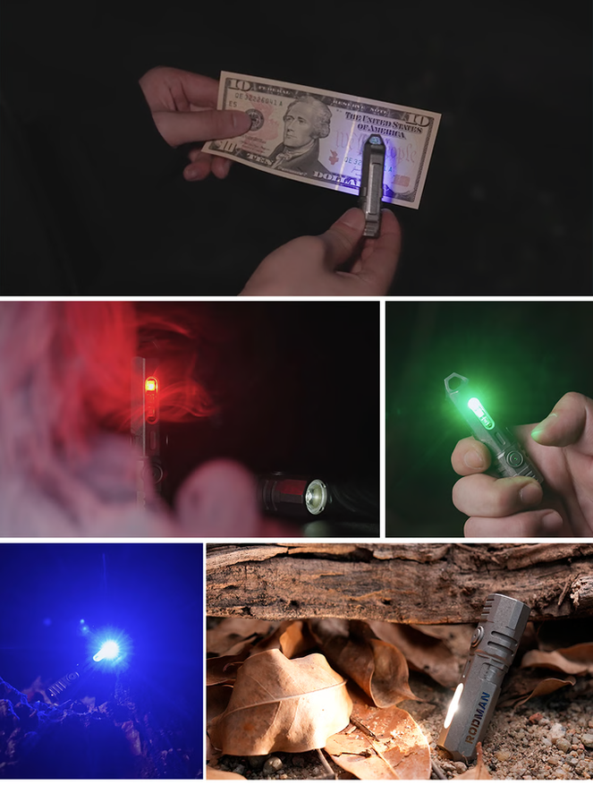 Лучший фонарь для освещения темных мест — тот, который есть в данный момент под рукой. Компания из Гонконга Rodman, которая специализируется на компактных фонарях наключного формата, обновила свою титановую модель mini до версии pro. Пиковый световой поток поднялся до 600 люмен, но осталось неизменной возможность использовать не только основной белый свет 4000K, но и боковой цветной (красный/синий/зеленый) и ультрафиолетовый (365 нм длина волны) светодиоды.