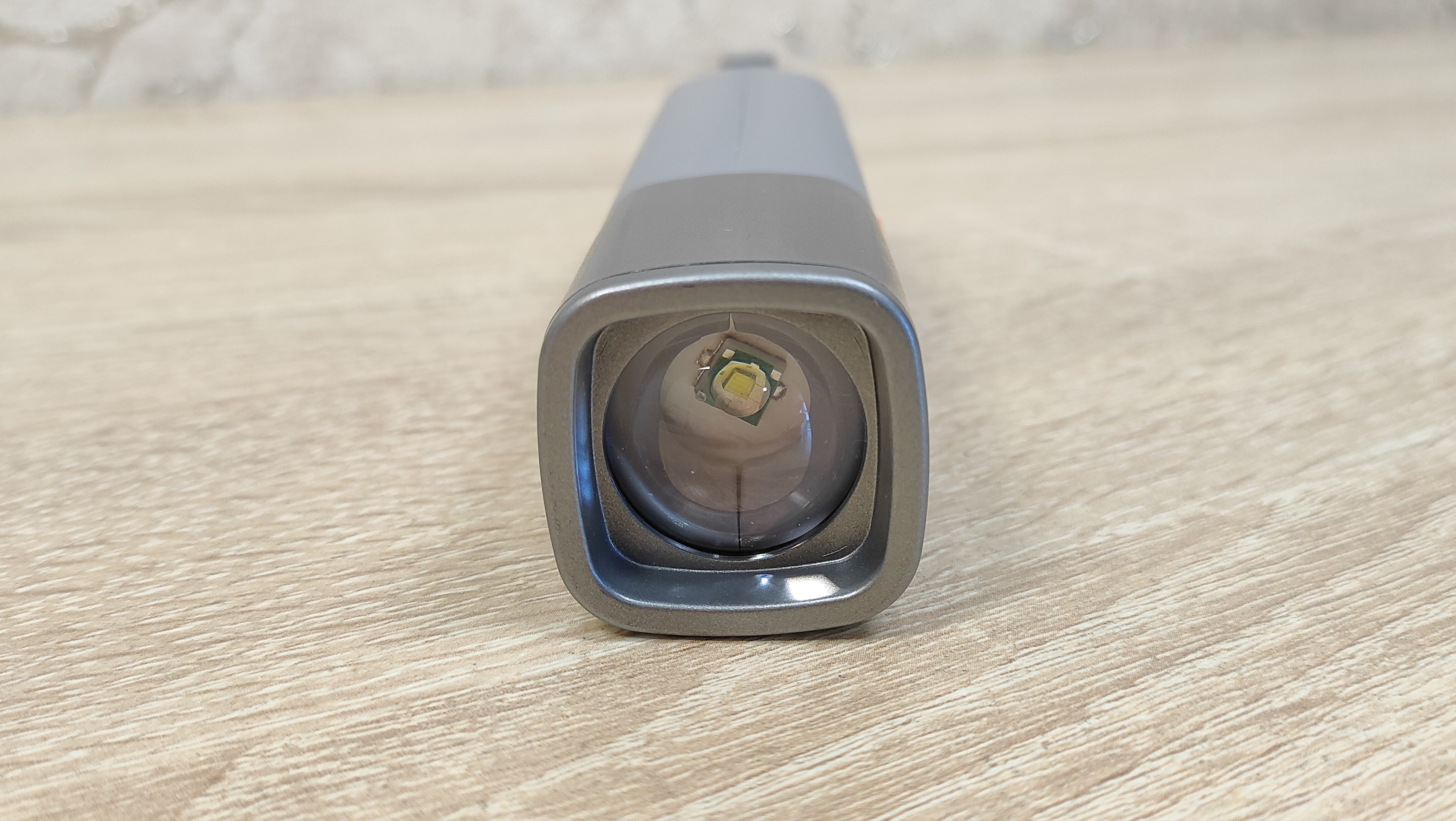 Во-первых, я у себя в голове нарисовал картину, что фонарик будет немногим больше банки 18650. Но это я «сам себе злой Буратино», так как даже по фото в отзывах видно, что он явно больше. Во-вторых, вживую он сильно больше, чем я нарисовал у себя в голове. В-третьих, выглядит неплохо, откровенным барахлом от него не веет (хотя цена в 132 рубля другого и не предполагает), в отличие от фонарей которые покупались 10 лет назад, наверняка многие помнят, чёрные короткие фонарики тоже с подвижной линзой и кнопкой на торце, и, как и у всех, этот фонарь начал тупить. Иногда его удавалось привести в рабочее состояние лёгким ударом по голове. Спустя какое-то время, удары закончились инсультом фонаря и он больше не включился. Надеюсь, с этим фонарём такого не будет.