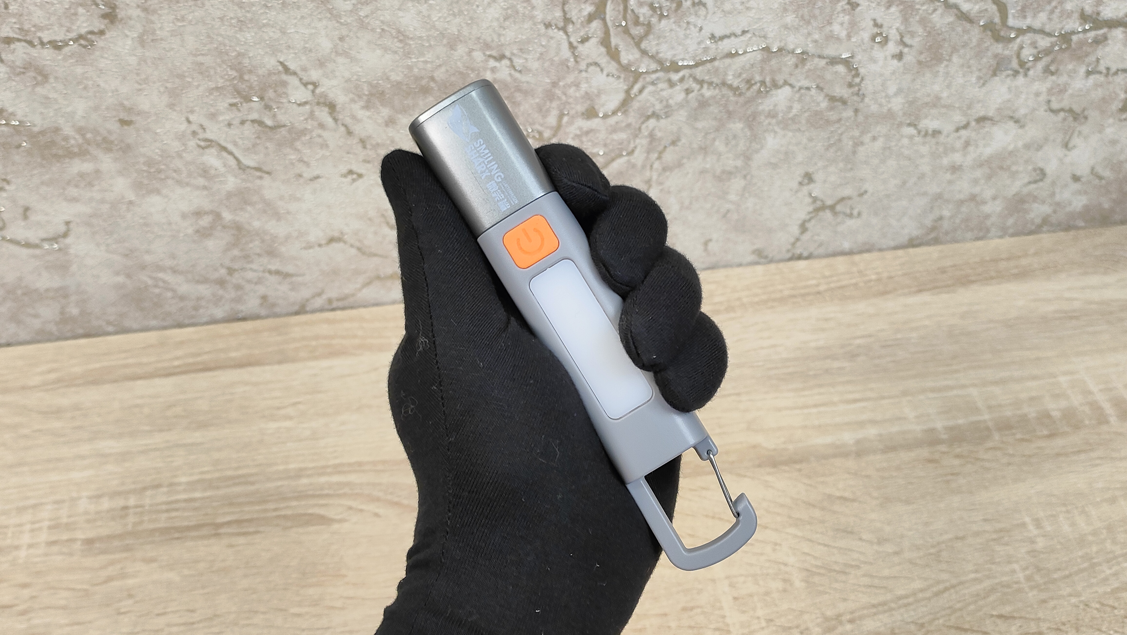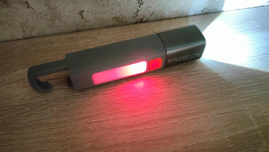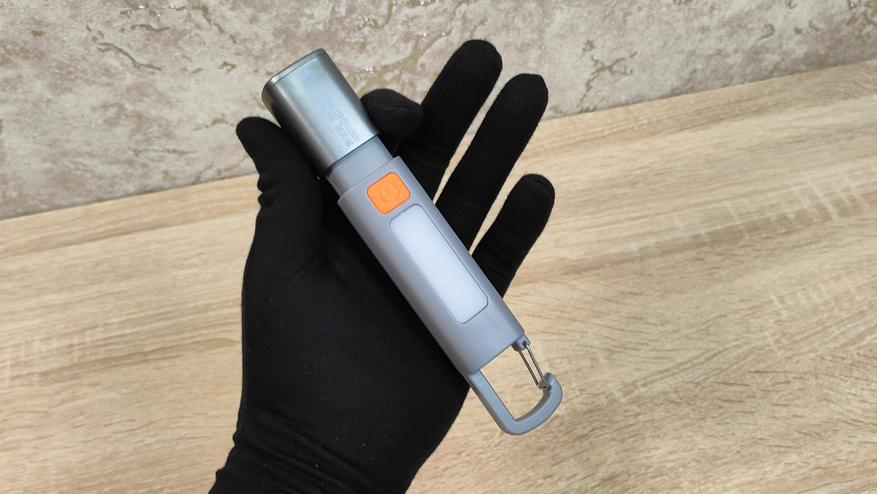 Боковой свет не такой яркий, но более чем достаточный, при полном отсутствии естественного освещения, да и искусственного тоже. Это часть фонаря больше заливающая всё вокруг, просто имитируя некий рабочий свет. Карабин будет тут очень кстати, а вот отсутствие магнита я сразу обнаружил и подумал, что было бы здорово, будь он где-то на противоположной стороне от COB-матрицы.