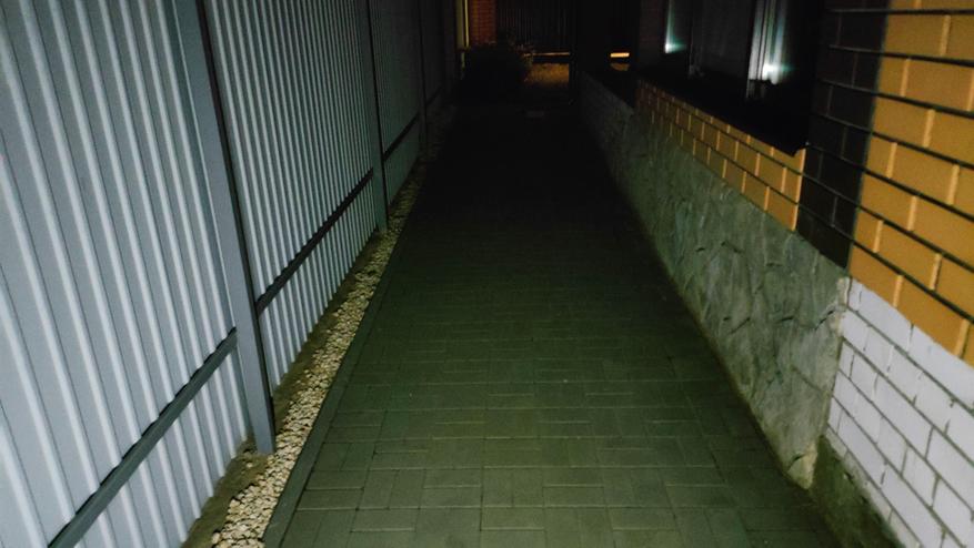 Сконцентрированный луч спокойно и уверенно даёт световое пятно до 40 м, наверняка может и дальше, но требовать от дешёвого фонаря сверхспособностей, думаю, не стоит. Кстати, световое пятно полностью отражает светодиод который внутри установлен. В любом случае, для такой цены дальность более чем отличная. До забора примерно метров 22-24.