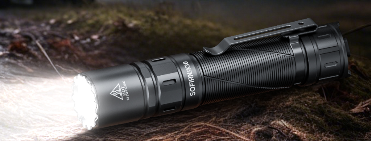 Новый тактический фонарик Sofirn SK30 получил ударный безель из нержавеющей стали, моментальный стробоскоп и дальнобойность в 370м при турбо-режиме яркостью в 3000 люменов. Новинка использует светодиод Luminus SFT70 с питанием от 21700 аккумулятора и управляется двумя кнопками на хвосте.