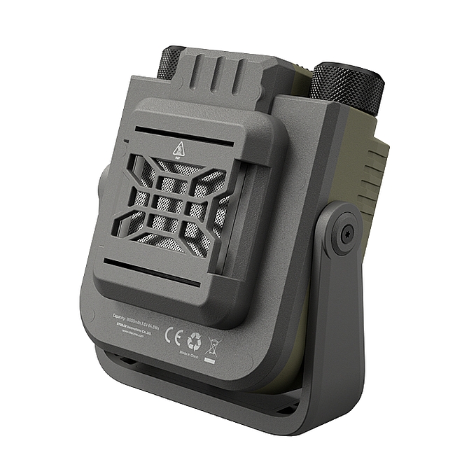 Размеры пластикового корпуса 106.4 x 121.8 x 52.7 мм, масса 515 г. Защита от воды по стандарту IP66. На задней части фумигатор (2 режима) с нишей под пластинки. В подставке магнит (сила удержания 22 Н) и резьба для установки на штатив. Управление парой кнопок и двумя поворотными рукоятками. Световой поток регулируется от 50 до 3000 люмен, температура света 2700-6500 K.