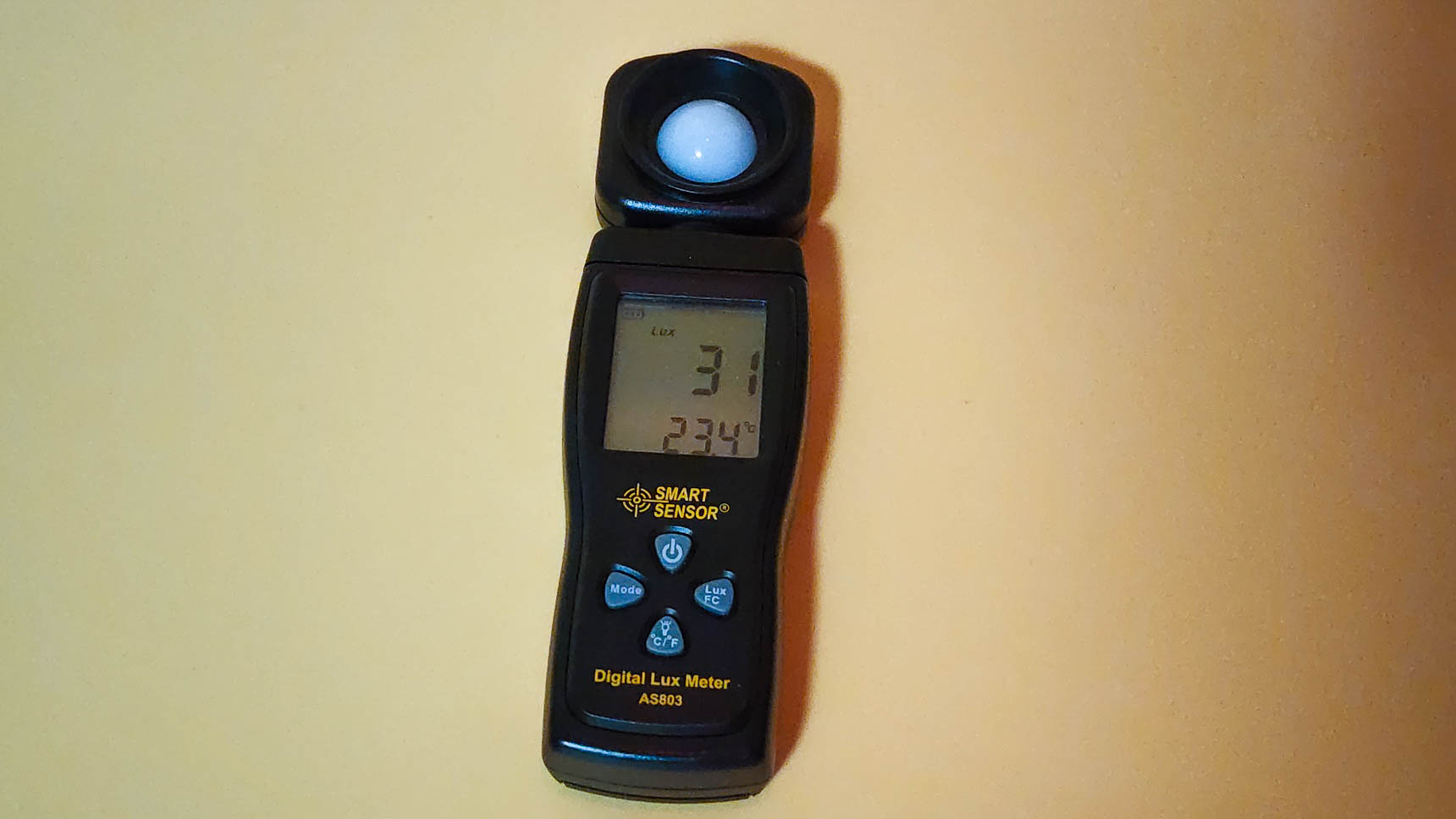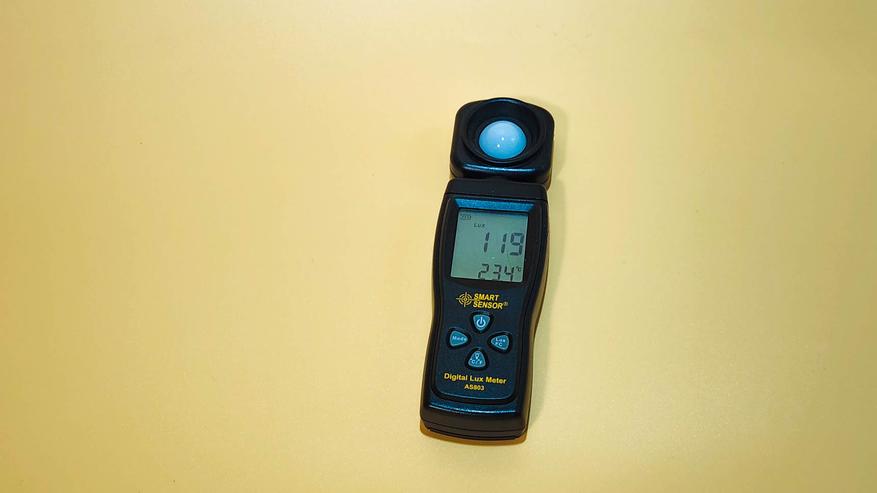 Измерено с помощью люксометра SS AS803 с расстояния примерно метр.