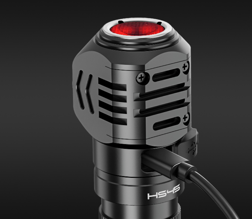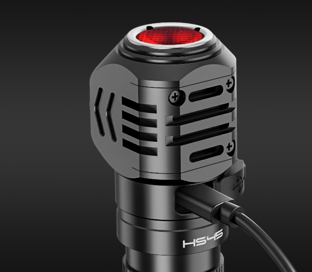 Питается новинка от сменного литий-ионного аккумулятора типоразмера 21700, ёмкостью в 5500mah. Заряжаться Sofirn HS45 будет через встроенный чуть ниже головы разъём USB-C током в 5В2А, индикация процесса зарядки будет с помощью привычного красно-зеленого индикатора в кнопке на голове. Заявлена возможность блокировки кнопки по 3-м щелчкам и моментального доступа к минимальной и максимальной яркостям.