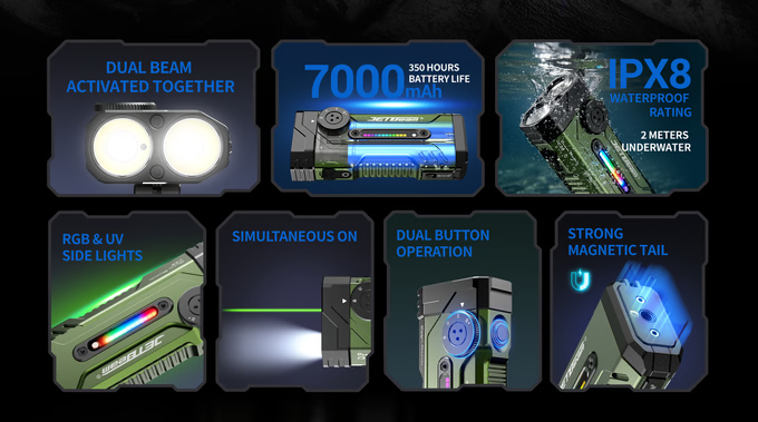 Jetbeam E28, подобно вышедшему осенью «крылатому» Wurkkos HD02 (обзор), является универсальным фонариком, в корпусе которого нашлось место светодиодам ближнего и дальнего света, ультрафиолетовому светодиоду, панели RGB-цвета и зелёному лазеру.
