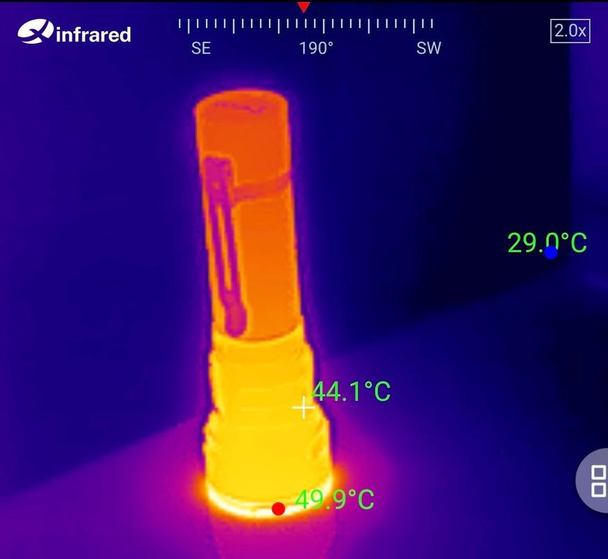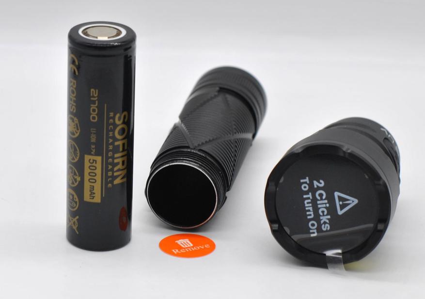 Масса 64 г., ескость на разряд близка к заявленной на корпусе (4900 мАч). Такой же АКБ стоит во многих моделях бренда, например, мощном налобном HS43.