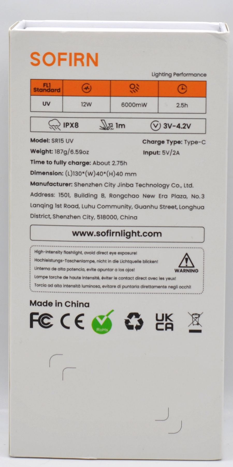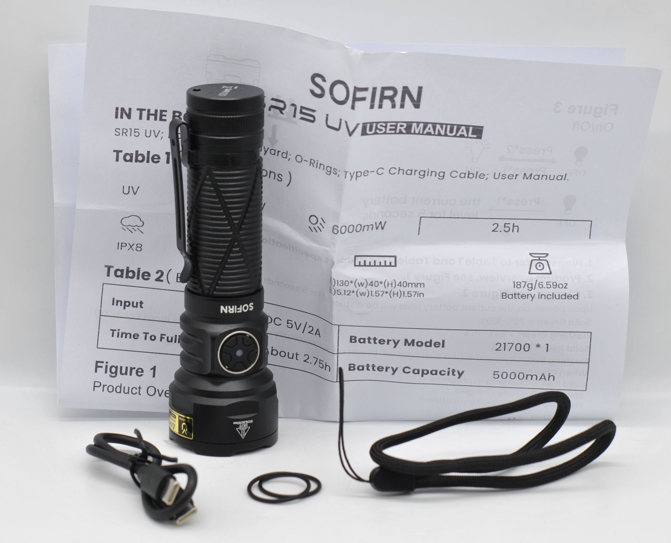 - Сам фонарь SR15UV с аккумулятором