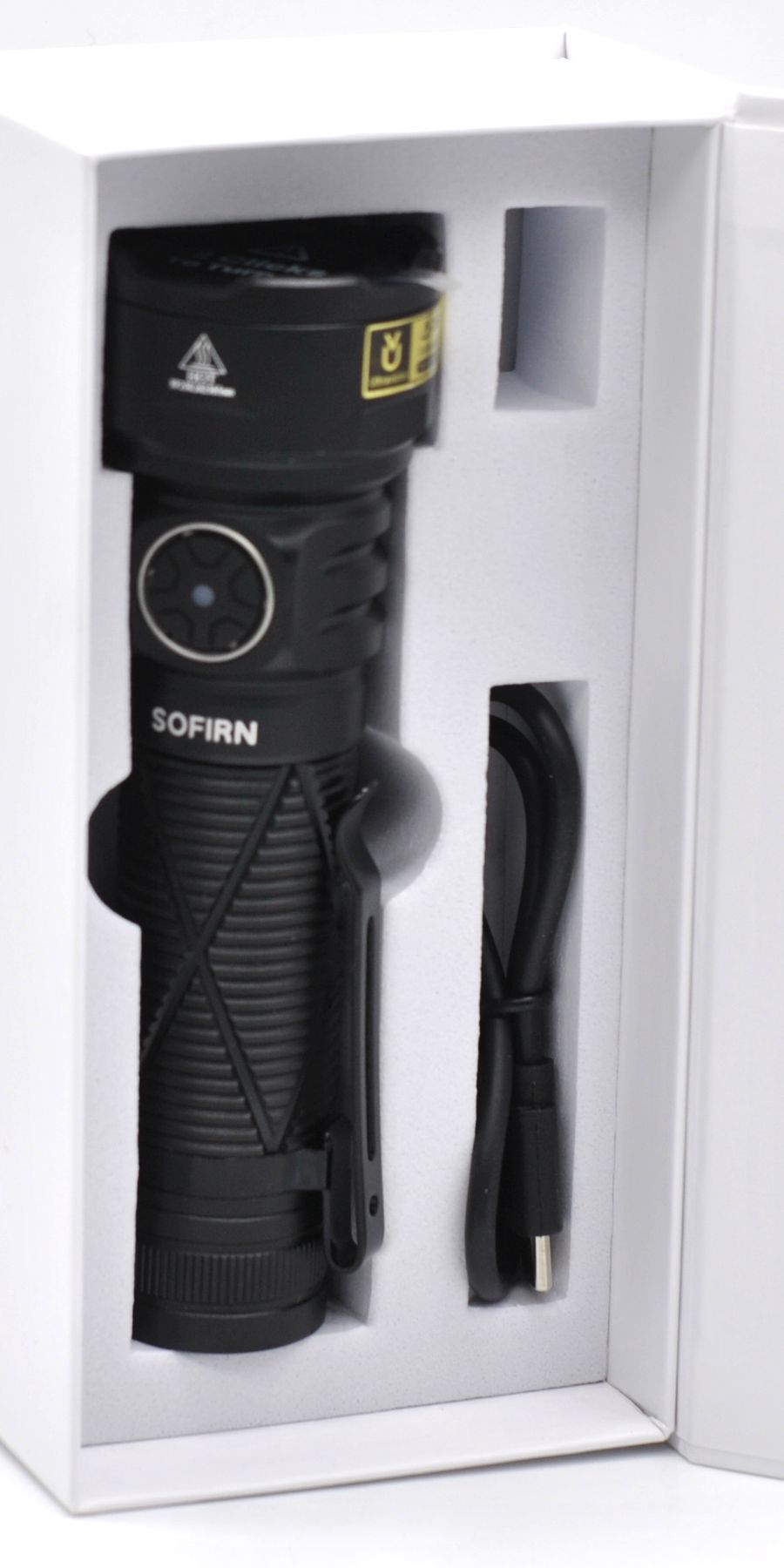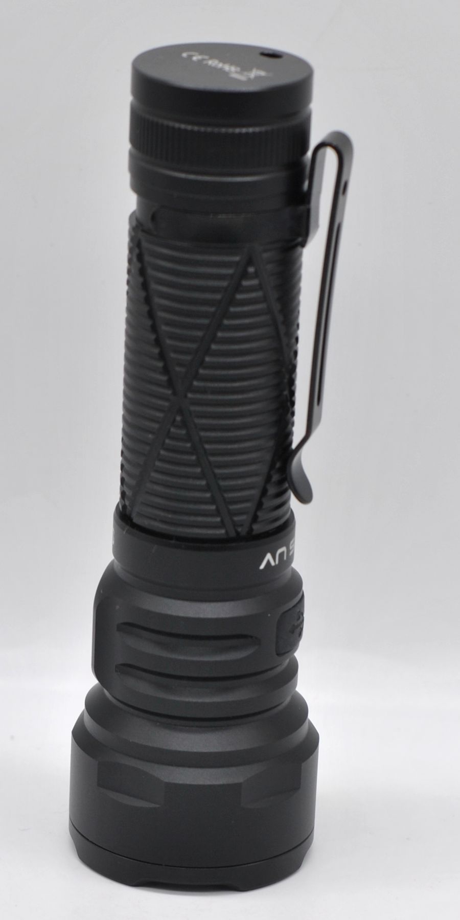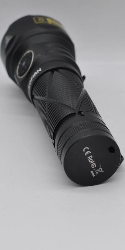Корпус алюминиевый с крупной головой (выступы безеля зазищают стекло), на месте хвата крупная насечка (там диаметр 27 мм), на хвосте магнит и проушина под ремешок. Клипса стальная, поворотная, посадка почти 5 см. Зарядный порт под плотной резиновой заглушкой.
