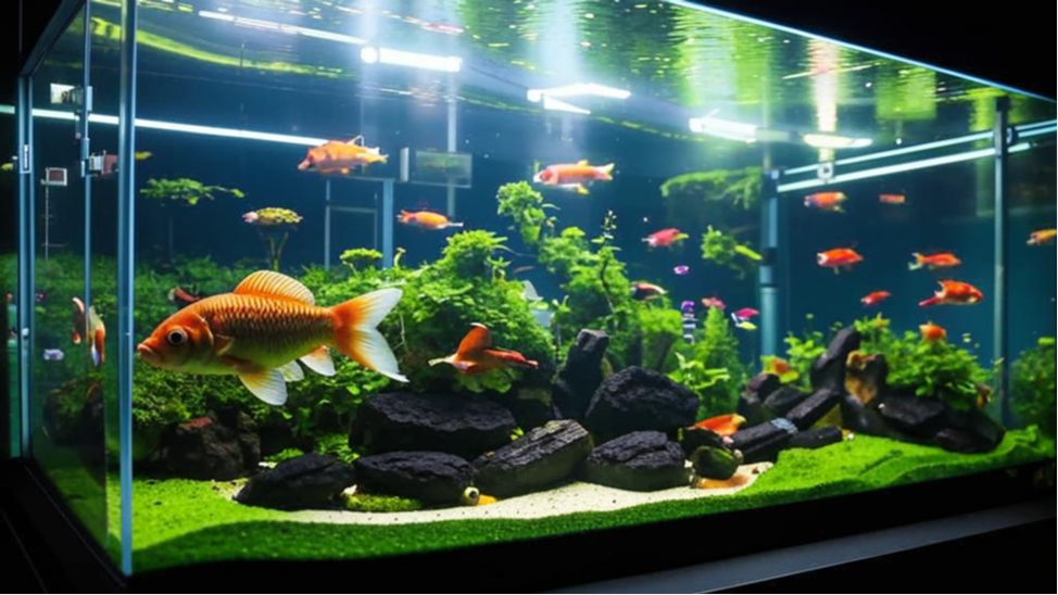 — аэрация, рыбам надо дышать, для этого в воде должен быть кислород, достигается это тремя способами, начать можно с дифузора — аэратора на штатный фильтр, но его производительность ограниченная, так что при большом количестве рыб потребуется компрессор.