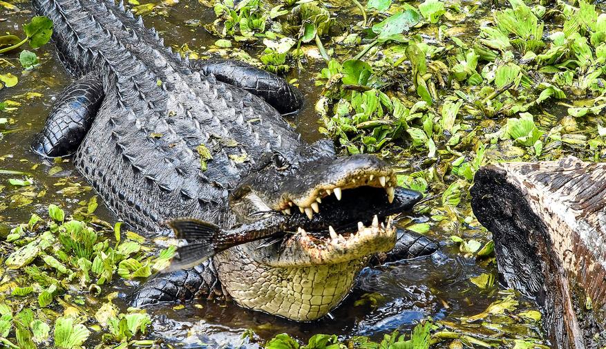 Аллигаторы предпочитают добычу, которую нужно дробить: черепах, ракообразных, крупных рыб. Да, были даже зафиксированные случаи, когда они разгрызали кокосы, редкость, конечно, но факт любопытный. Широкая пасть помогает им давить, как пресс.