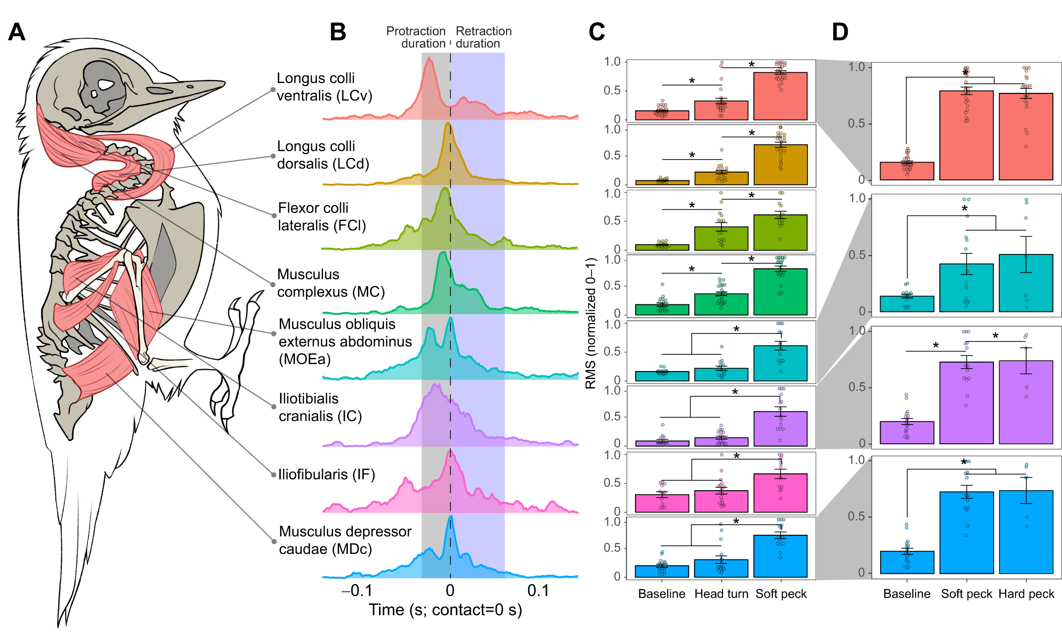 Главный вывод исследования: в нанесении удара участвуют не только мышцы головы и шеи. Активно работают мышцы пресса, бедер и даже хвоста. И у каждой группы своя, четко определенная функция.