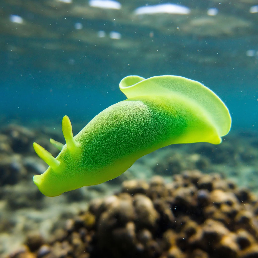 Морской слизень элизия хлоротика совершает нечто невероятное — он крадёт хлоропласты у водорослей и встраивает их в клетки своего тела. После этого слизень может месяцами жить, питаясь только солнечным светом, как растение! Это единственное известное животное, способное к фотосинтезу. Слизень выглядит как ярко-зелёный листочек с глазками и может обходиться без пищи до 10 месяцев, просто загорая на мелководье.