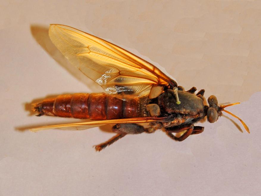 Название этого вида звучит как комплимент эволюции: «heros» («герой») намекает на его невероятные размеры, а «Gauromydas» переводится как «величественная муха». И правда — размах крыльев этого создания достигает 12 см, что вдвое больше, чем у многих стрекоз. А длинна может достигать 7 сантиметров. Если бы такие мухи жили в наших широтах, их бы путали с маленькими птичками. Но как насекомое, чьи родственники редко превышают пару сантиметров, смогло вырасти до таких размеров? Некоторые исследователи предполагают, что это результат изоляции в тропических лесах, где мало хищников, способных справиться с таким гигантом, и обилие ресурсов для личинок. Кстати, о личинках — их история ещё удивительнее.