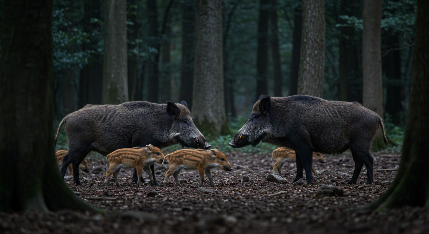 Кабан — воплощение мощи и выносливости. Его массивное тело, покрытое жёсткой щетиной, напоминает броню, защищающую от холода и колючих кустарников. Голова крупная, с коротким рылом и клыками, которые у самцов вырастают до 15 см. Щетина на спине образует характерный гребень, а вес животного может достигать 300 кг в зависимости от региона. Такая внешность делает кабана универсальным выживальщиком, способным справляться с суровыми условиями.