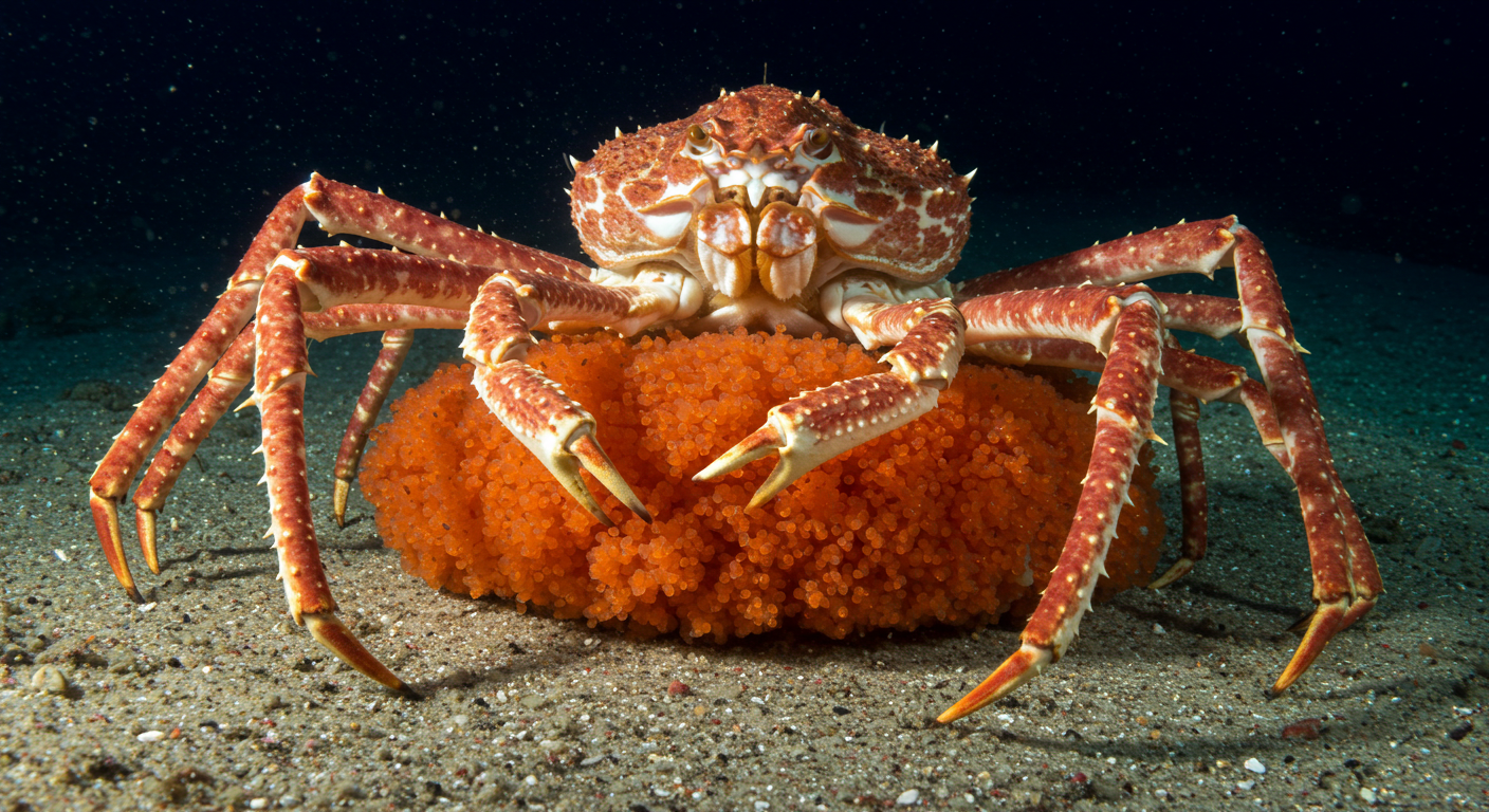 В сезон размножения, с января по март, они поднимаются на мелководье глубиной около 50 метров, где вода прогревается до 12-15 °C, создавая комфортные условия для выведения потомства. Молодые крабы, в отличие от взрослых, чаще держатся ближе к поверхности, где теплее и больше пищи.