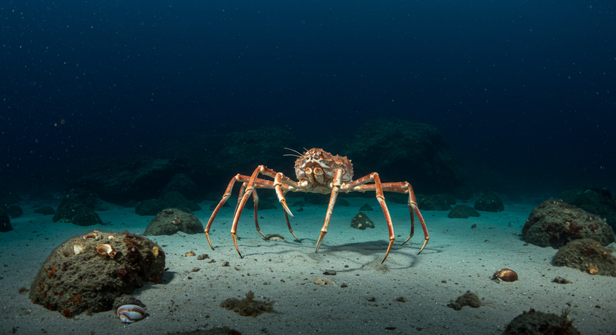 Как гигантский японский краб-паук выживает на дне Тихого океана?