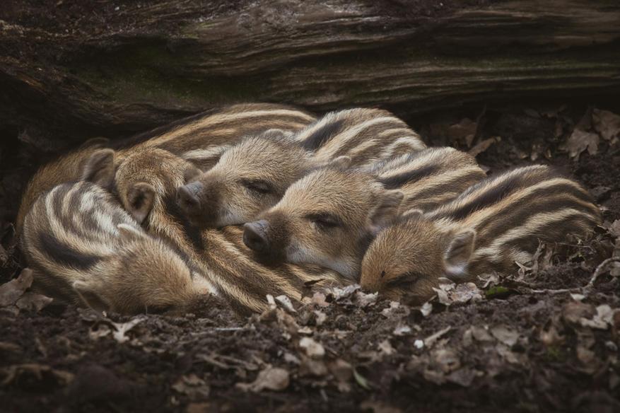 У диких кабанов есть строгий режим дня, почти как у военных. Днём — отбой. Лежбище, называемое логовом, устраивается в густом кустарнике, буреломе или камышах — туда, куда ни охотник, ни хищник не пролезет. Иногда вепри роют себе ямы — не глубокие, но уютные, под деревьями или вблизи воды. Там они лежат, прижавшись друг к другу: зимой — чтобы согреться, летом — чтобы укрыться от жары и насекомых.