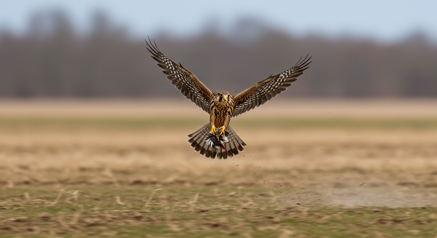 Ястребы, напротив, — эксперты лесной охоты, обитающие в лесных массивах с полянами или опушками. Их широкие крылья и длинный хвост обеспечивают маневренность среди деревьев, где они подстерегают добычу. Ястребы часто нападают из засады, стремительно падая на жертву, сидящую на земле или ветке, либо преследуют ее в низком полете. Их главное оружие — острые когти, которыми они хватают грызунов, ящериц или мелких птиц.