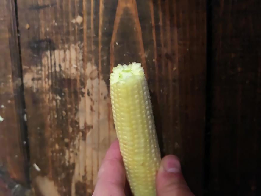 И самое главное — в обеих случаях сердцевина початка, которая у взрослой кукурузы превращается в твёрдый несъедобный стержень, остаётся нежной, сочной и съедобной.
