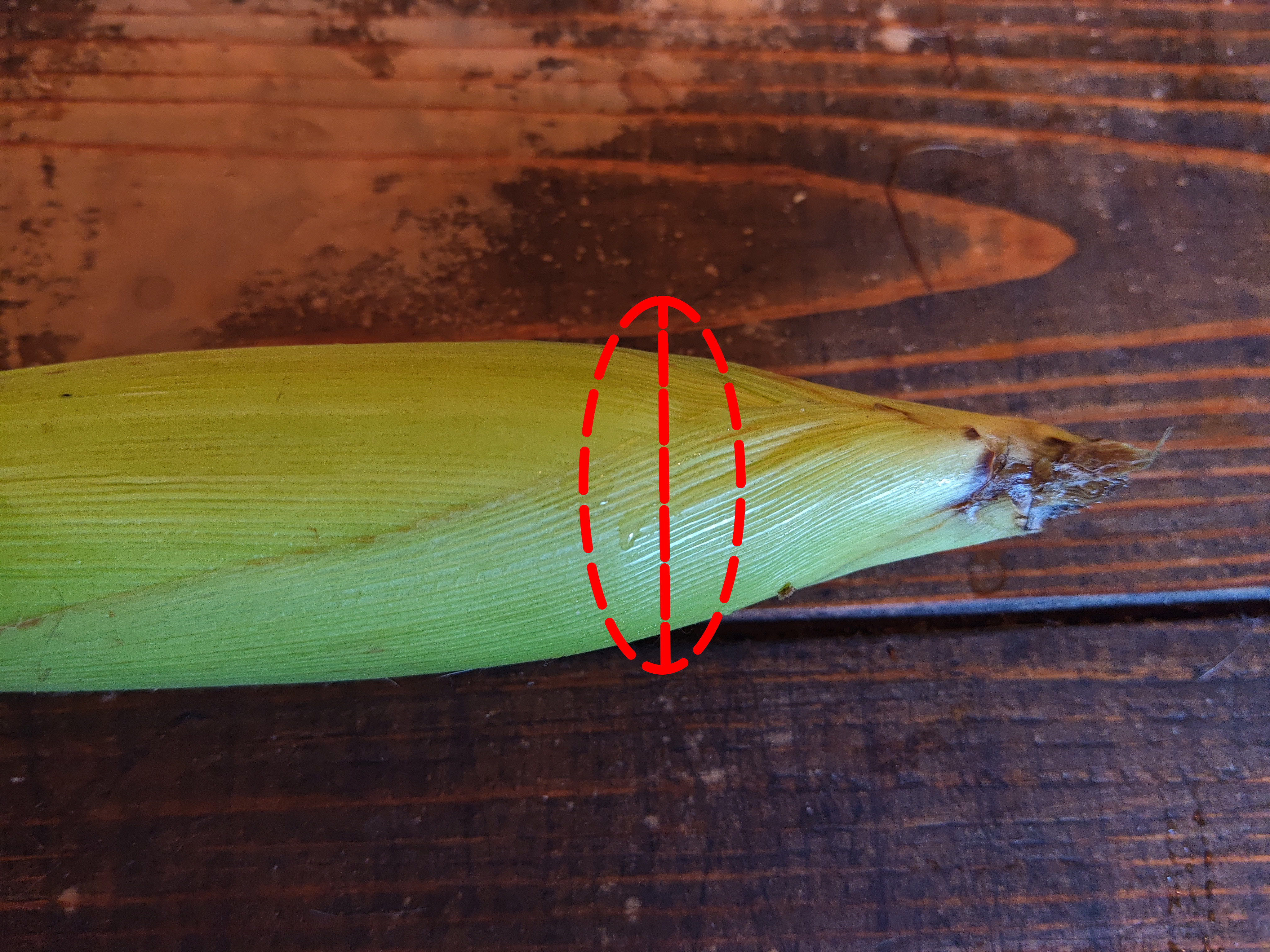 - Возьмите початок. Наша задача — отрезать у него «попку», то есть ту часть, которой он крепился к стеблю. Посмотрите на основание початка: в одном месте заметно резкое утолщение. Вот как раз по этому утолщению, отступив примерно на одну фалангу пальца от самого конца, и нужно сделать срез. Такое простое действие значительно облегчит нам последующее снятие листьев.