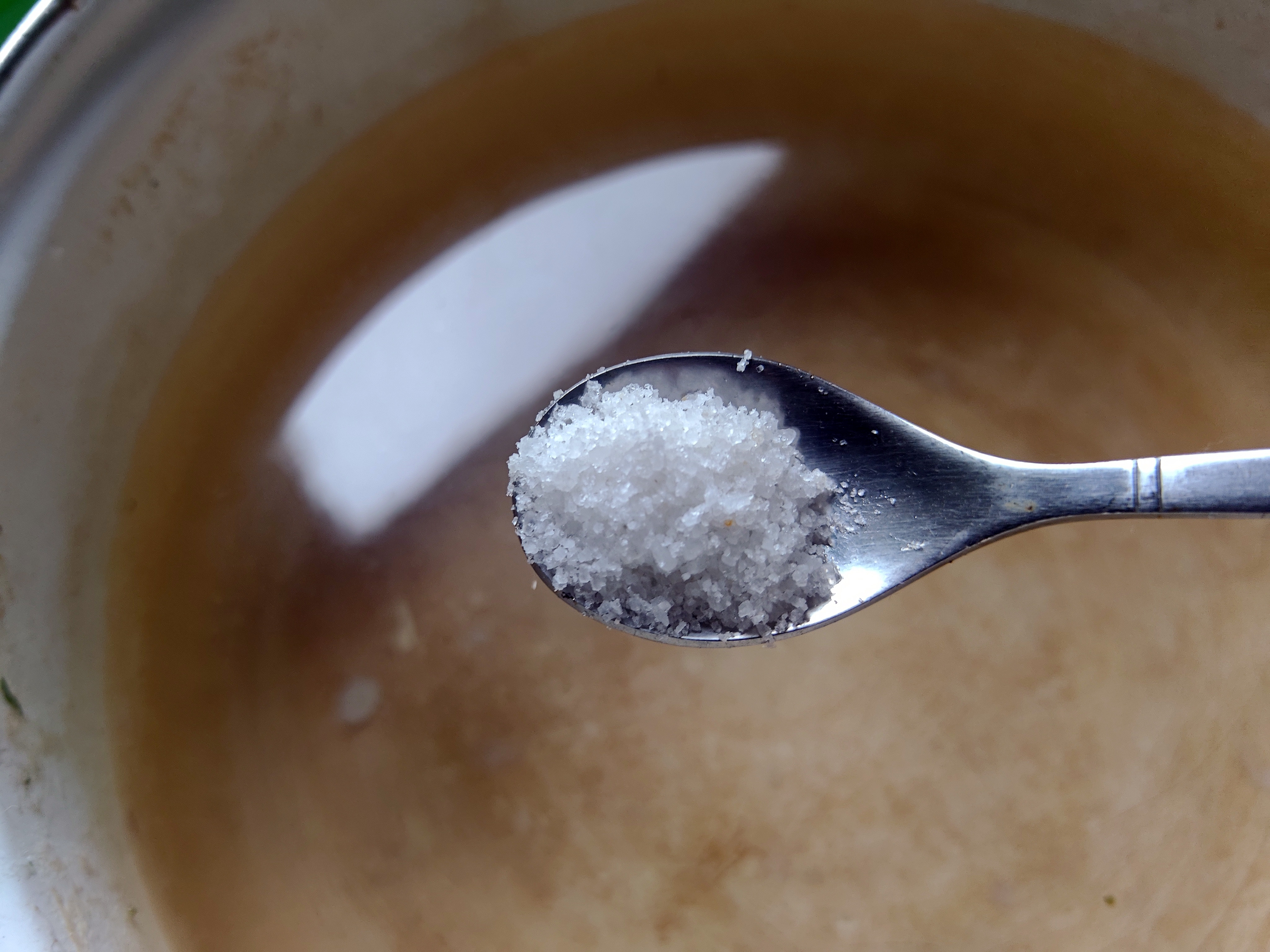 - Посолите воду по вкусу — главное, не переборщить, кукуруза вбирает в себя соль даже слишком хорошо. Если что, можно досолить потом.