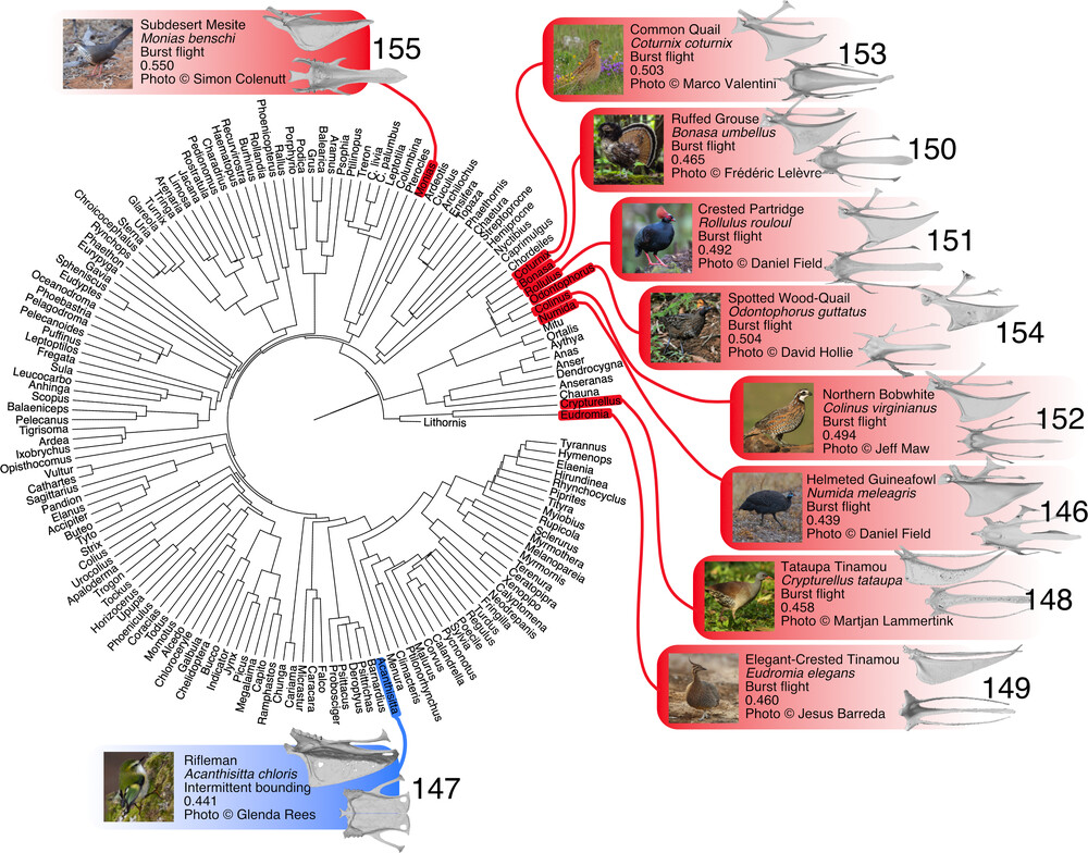 Наиболее далекими по форме от Lithornis оказались как раз тинаму и курообразные. Их полет — короткий и резкий, не требует много кислорода. Для путешествий через море такой способ не подходит.
