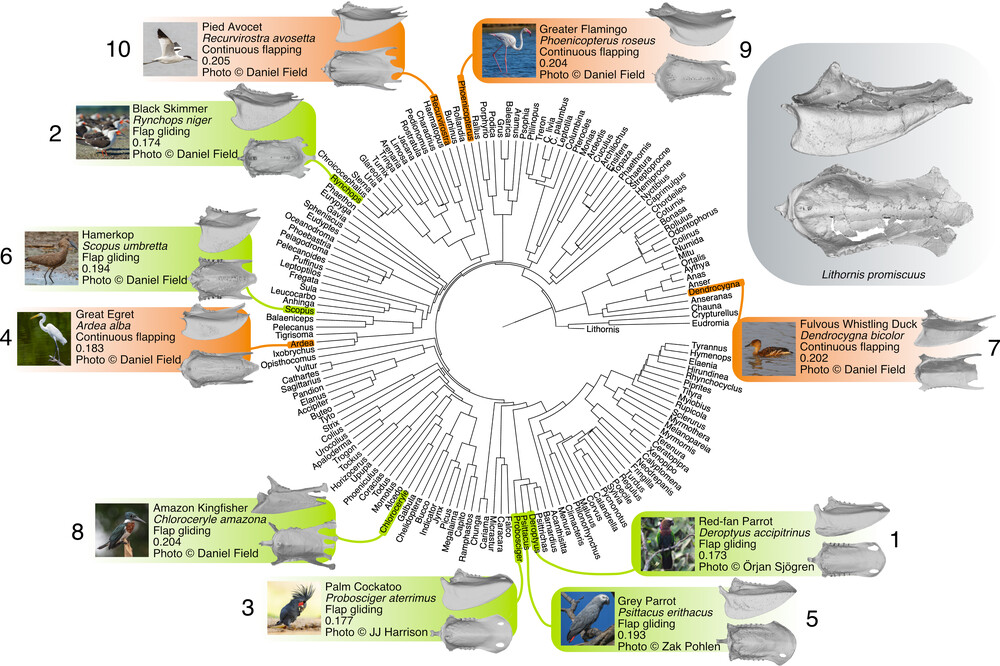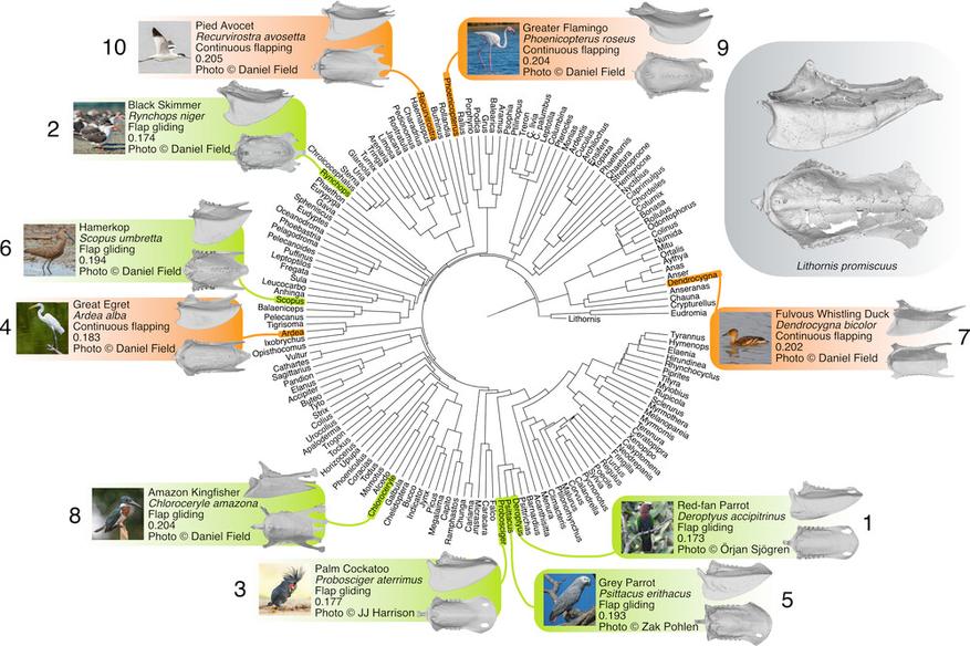 Lithornis попал в компанию выносливых летунов. Десять современных птиц с самой похожей на него грудиной — это фламинго, цапли, зимородки и попугаи. Всех их объединяет одно: они могут совершать длительные перелеты. Например, большая белая цапля, чья грудина очень похожа на грудину Lithornis, способна путешествовать на огромные расстояния.