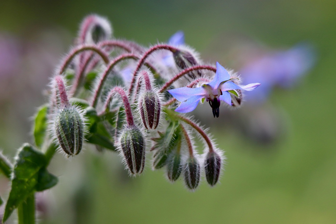 Голубые звёздочки бораго не только очаровательны, но и имеют лёгкий огуречный вкус. Их можно бросить в холодный суп, салат или использовать для декора напитков. Кустики неприхотливы, любят солнце и щедро цветут всё лето.