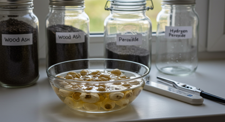 Качественные семена — основа хорошего урожая. Чтобы они лучше взошли и не болели, их нужно подготовить. Погрузите семена в воду с температурой около 45 °C на 10 часов или в раствор древесной золы (3 ст. л. на 1 л воды) на 4 часа, чтобы простимулировать прорастание. Для защиты от болезней замочите их на 15 минут в слабом растворе перекиси водорода (1 ч. л. на 200 мл воды), затем промойте чистой водой. Для повышения устойчивости к холодам подержите семена в холодильнике (+4 °C) сутки.