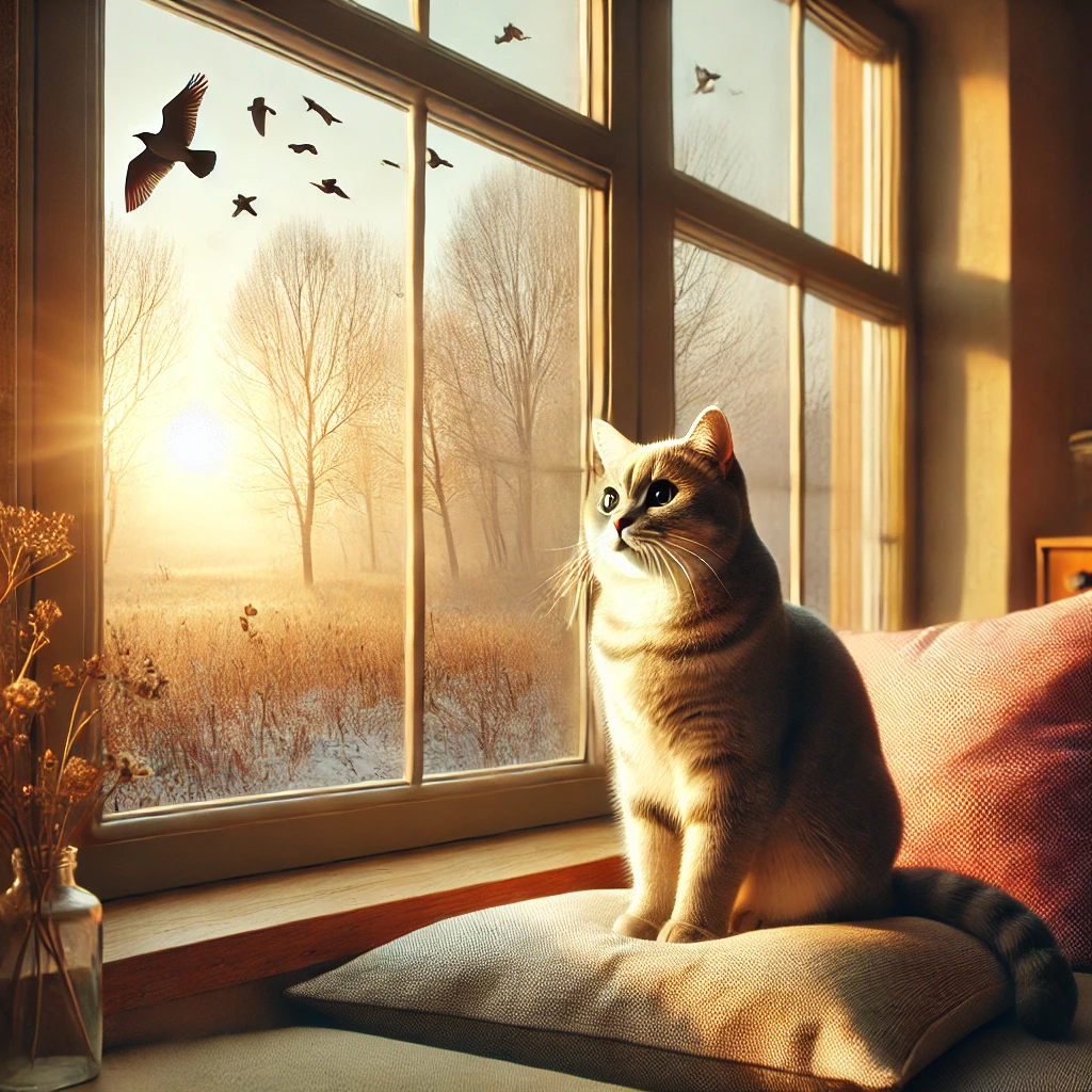 Кошки — прирожденные охотники. Даже если ваш питомец живет в уютной квартире и не выходит на улицу, охотничий фактор никуда не исчезает. Сидя на подоконнике, кошка превращается во внимательного наблюдателя. Она выслеживает птиц, насекомых, или даже упавшие листья, словно готовясь к прыжку.