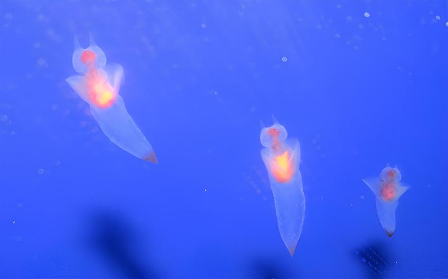 После этого танца один из них вскоре откладывает студенистый мешочек с яйцами, который дрейфует в толще воды. Вылупившиеся малыши совсем не похожи на грозных охотников. Первые дни они питаются микроскопическими водорослями, как самые мирные вегетарианцы. Но это ненадолго. Очень скоро происходит волшебное превращение. Маленькая личинка с ресничками становится хищником и начинает охотиться на личинок своих будущих жертв — «морских чертей». С этого момента путь «ангела» предопределен: расти, охотиться, копить жир, танцевать брачный танец и снова давать жизнь новому поколению прозрачных охотников.