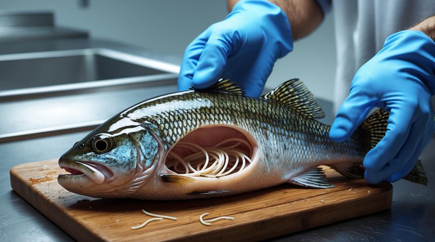 Распознать так называемую «солитерную» рыбу можно по нескольким тревожным признакам. Обычно она вяло держится у поверхности воды, может всплывать брюхом вверх и выглядит дезориентированной. Часто у такой рыбы раздут живот и заметна потеря координации. Но точный ответ даёт только потрошение: внутри обнаруживается белый ленточный червь. Это классический случай лигулёза — заболевания, при котором паразит поражает органы брюшной полости, не проникая в мышечную ткань.