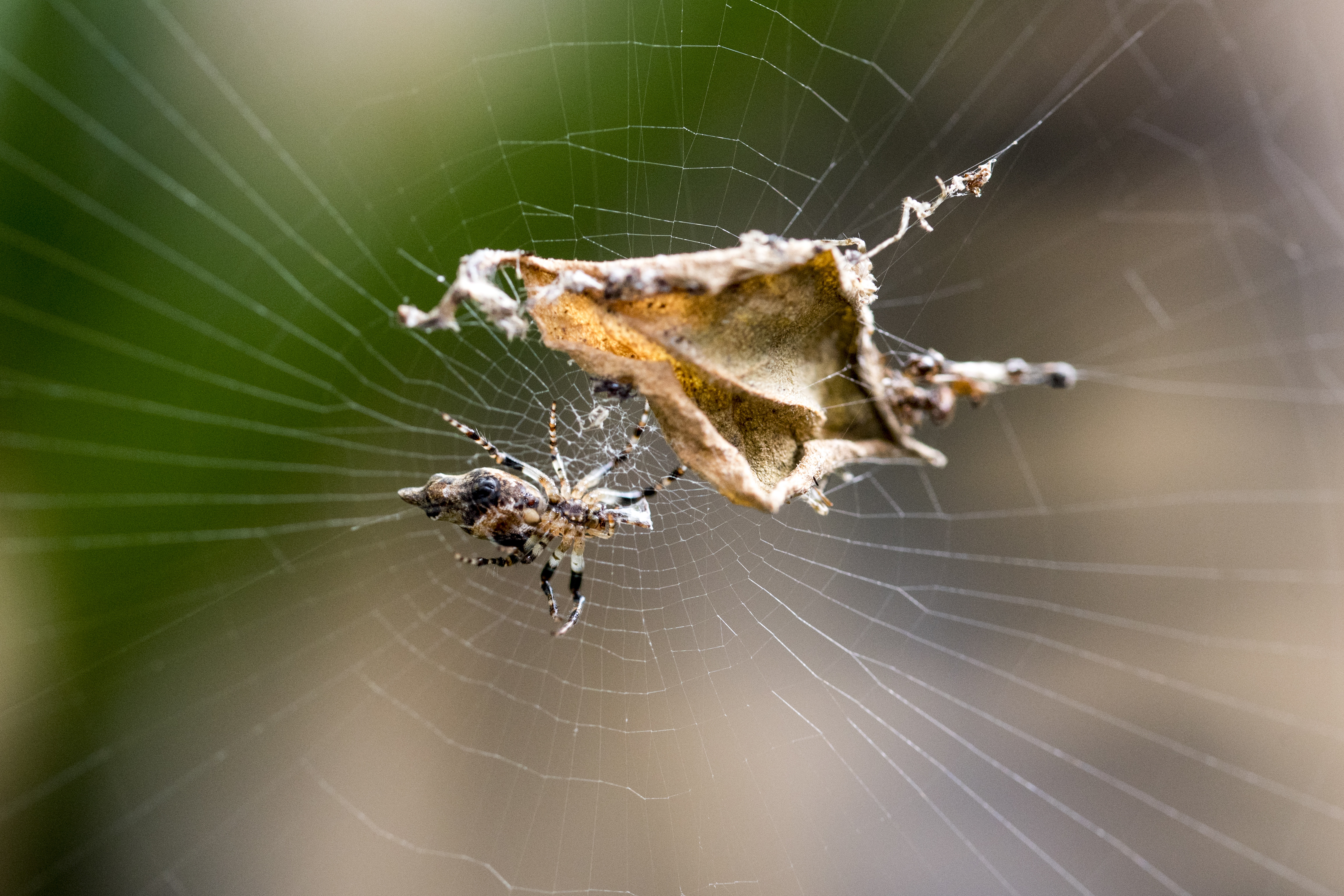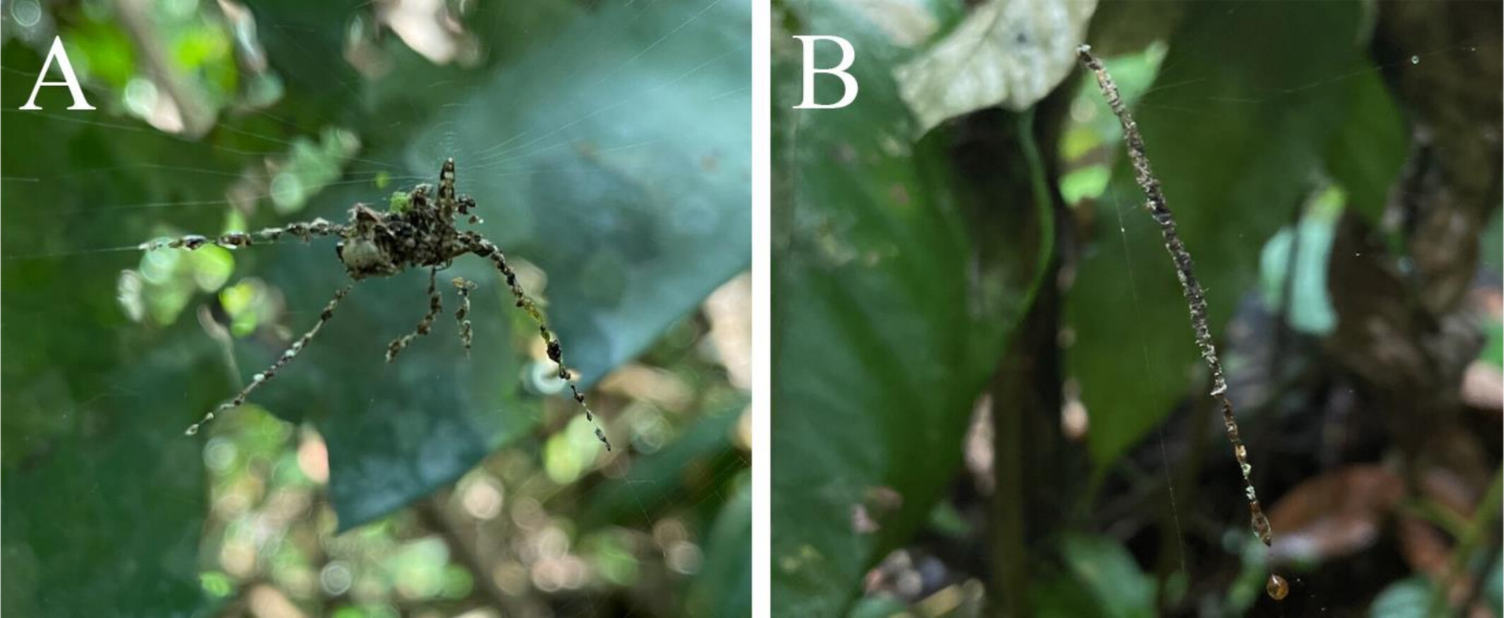 Пауки целенаправленно собирали детрит — сухие листья, останки насекомых — и скрепляли его шелком, формируя вытянутое тело и несколько расходящихся в стороны лап. Получившаяся конструкция очень напоминала силуэт другого, более крупного паука.