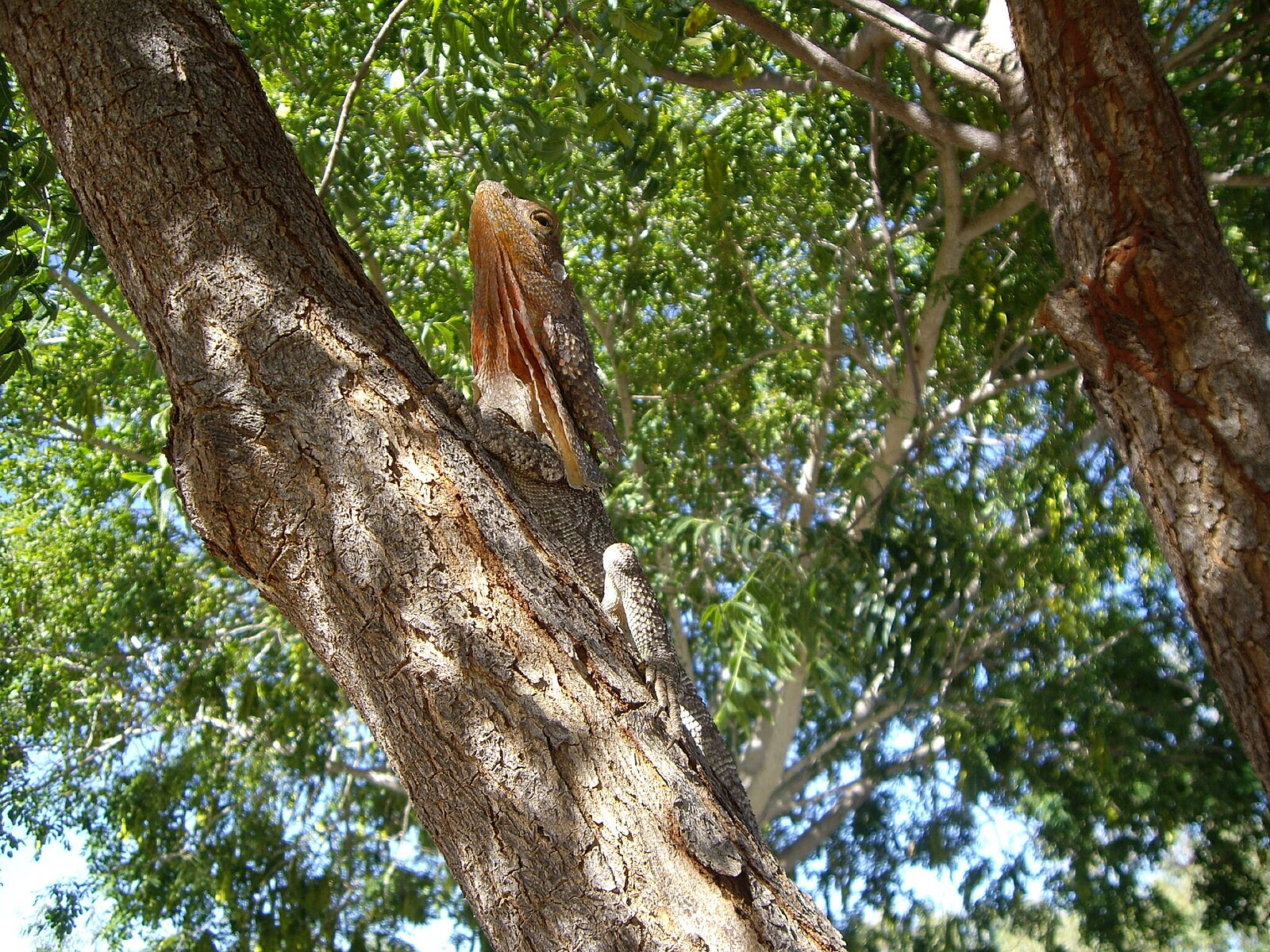 Обычно ящерица в течении дня старается находиться под солнцем, сохраняя нормальную температуру тела, однако при перегреве она раскрывает кожную складку для того, чтобы охладиться. При привлечении самки самец также может раскрыть свой красивый плащ, однако чаще всего он привлекает партнёршу с помощью кивков головой, что уже совершенно другое.