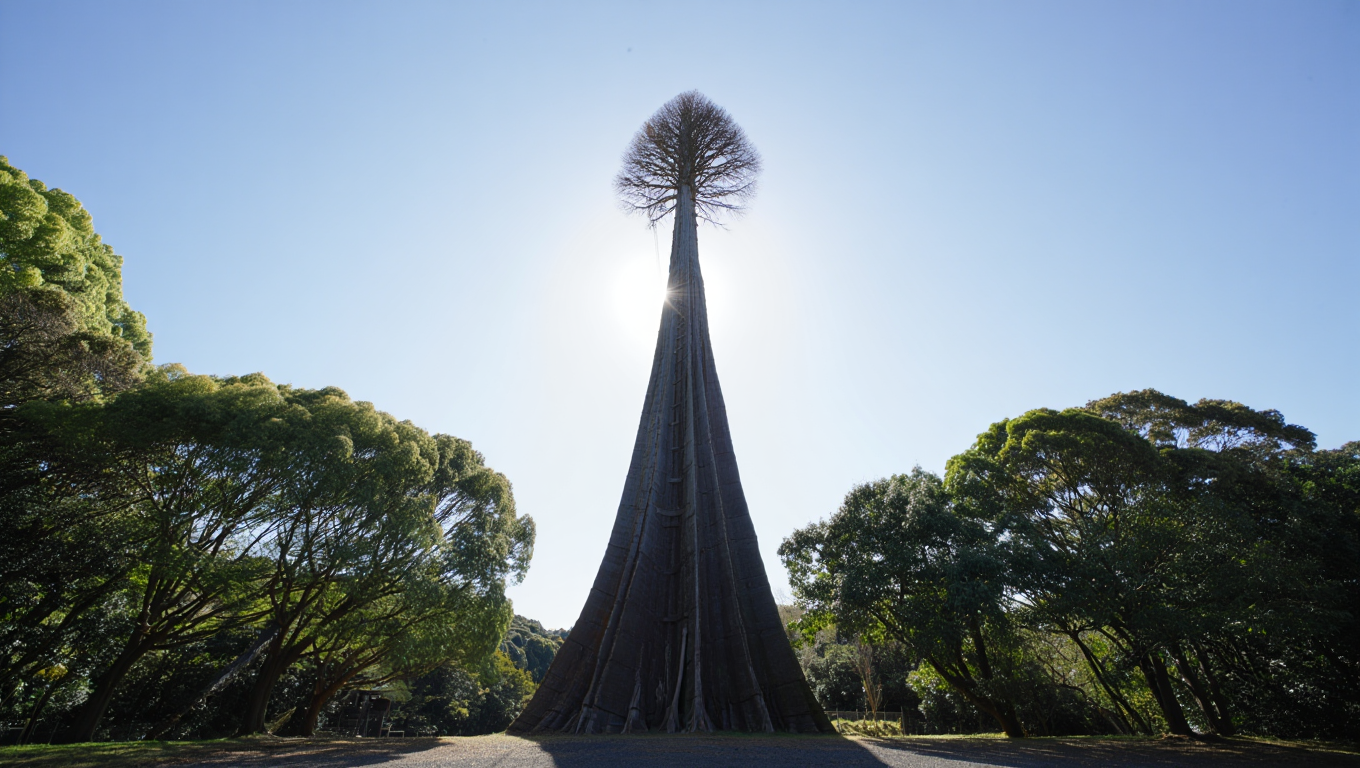 Если бы ствол дерева был не прямым, а имел форму очень широкого у основания конуса (как египетская пирамида), то теоретически оно могло бы вырасти метров до пятисот. Но в природе деревья так не растут — им нужно не только стоять, но и питаться, дышать, раскидывать ветви к солнцу. Так что идеальная форма для прочности — не всегда идеальная форма для жизни.