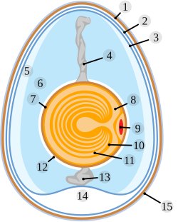 - Правильная ориентация: они позволяют желтку вращаться вдоль своей оси так, чтобы зародышевый диск (бластодиск) — маленькое светлое пятнышко на поверхности желтка — всегда был наверху, ближе всего к источнику тепла.