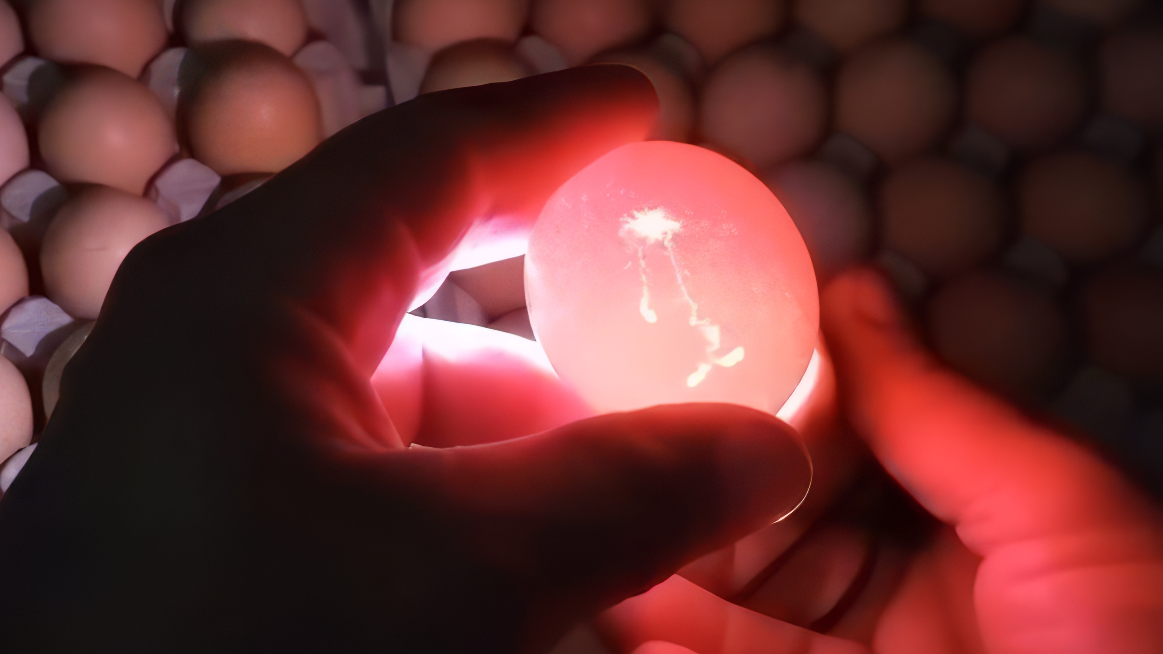 Овоскопирование — это наш метод неразрушающего контроля, позволяющий заглянуть внутрь яйца. Для этого нужен направленный источник света (овоскоп) и полная темнота.