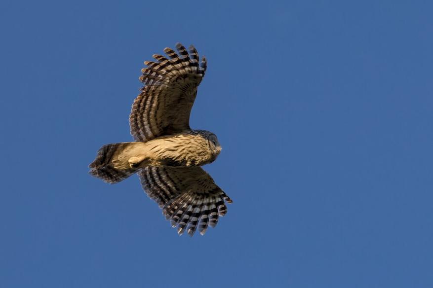 Эта структура особенно эффективна на низких скоростях полета — именно в таких условиях охотятся совы. Они планируют в воздухе на малых скоростях, стараясь как можно дольше оставаться незаметными для добычи. Бахрома на задней кромке крыла помогает им сохранять устойчивость в полете и одновременно снижает уровень шума.