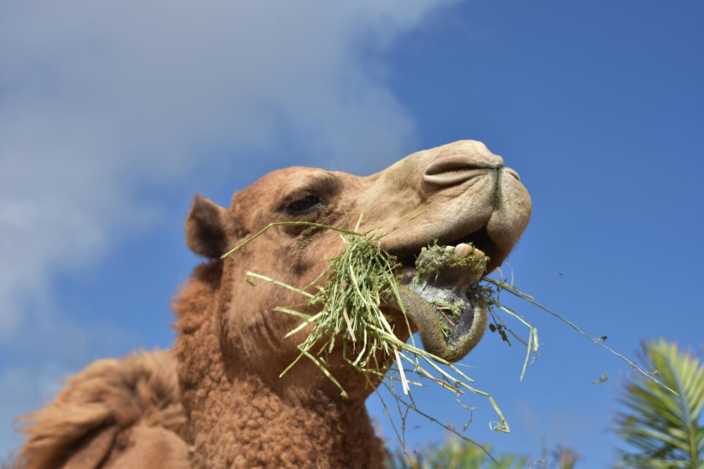 Верблюд питается колючими кустарниками и растениями, которые могут быть очень жесткими, а их переваривание требует нескольких этапов отрыжки и пережевывания.
