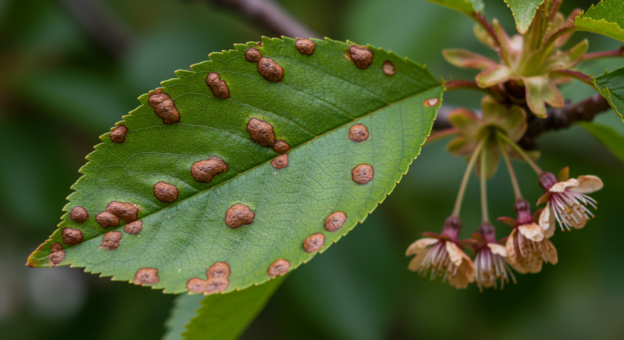 Грибковые заболевания, такие как монилиоз и коккомикоз, часто становятся причиной потери урожая. Монилиальный ожог поражает цветки и завязи, вызывая их некроз. Дерево выглядит словно обожженное, а плоды не формируются. Коккомикоз проявляется бурыми пятнами на листьях, которые со временем желтеют и опадают, нарушая фотосинтез и ослабляя растение.