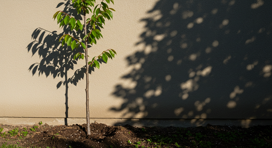 Место для вишни тоже играет важную роль. Эта культура любит солнечные участки, защищенные от ветра. Тень от высоких деревьев или построек снижает фотосинтез, из-за чего дерево не получает достаточно углеводов для формирования плодов. Кроме того, вишня плохо растет на тяжелых глинистых или заболоченных почвах. Если грунтовые воды залегают ближе 2 метров, создайте дренаж или сажайте дерево на холмик.
