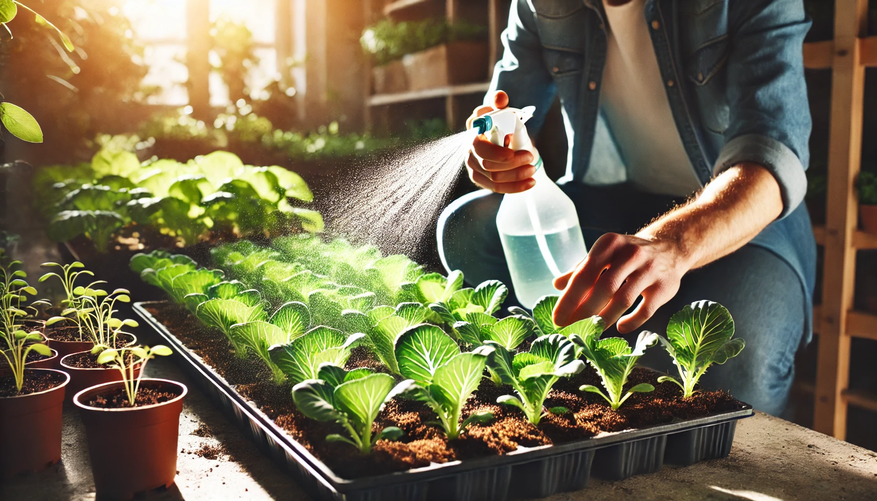 Правильный полив — ключ к здоровой корневой системе капусты. До появления всходов почву нужно поддерживать влажной, но не переувлажненной. Для этого используйте пульверизатор и опрыскивайте поверхность ежедневно, избегая пересыхания верхнего слоя. Как только ростки проклюнутся, сделайте паузу в поливе на 2-3 дня, чтобы они укрепились.