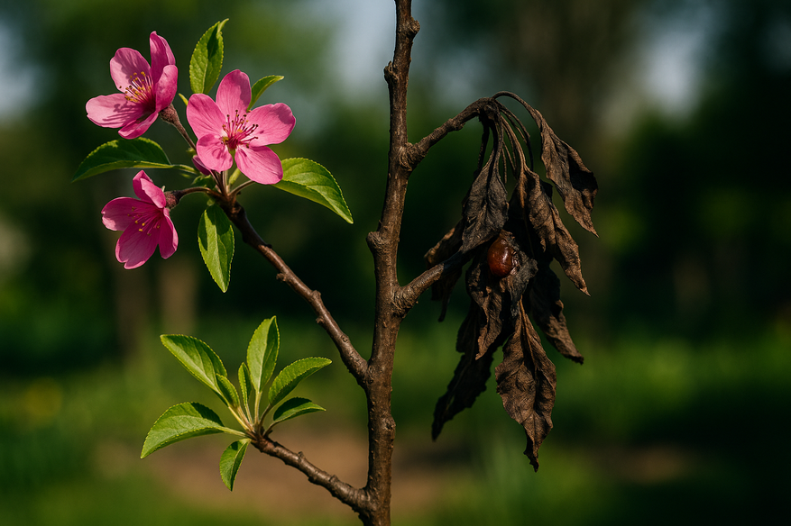 Весна в саду — время, когда цветущие деревья обещают щедрый урожай. Но именно в этот период садоводы сталкиваются с коварным врагом — монилиальным ожогом. Это грибковое заболевание способно уничтожить цветки, ветки и плоды, оставив сад без урожая. Чтобы защитить косточковые и семечковые культуры, нужно действовать на опережение. В этой статье мы разберем, что такое монилиоз, как он проявляется, и как эффективно уберечь сад, используя проверенные методы и препараты.