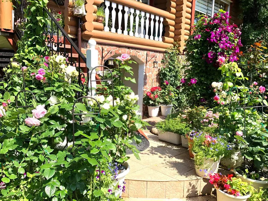 Вертикальное озеленение позволяет максимально использовать пространство. Вьющиеся растения на опорах создают дополнительные ярусы цветения. Клематисы, плетистые розы, декоративная фасоль превращают заборы и стены в цветущие вертикали.